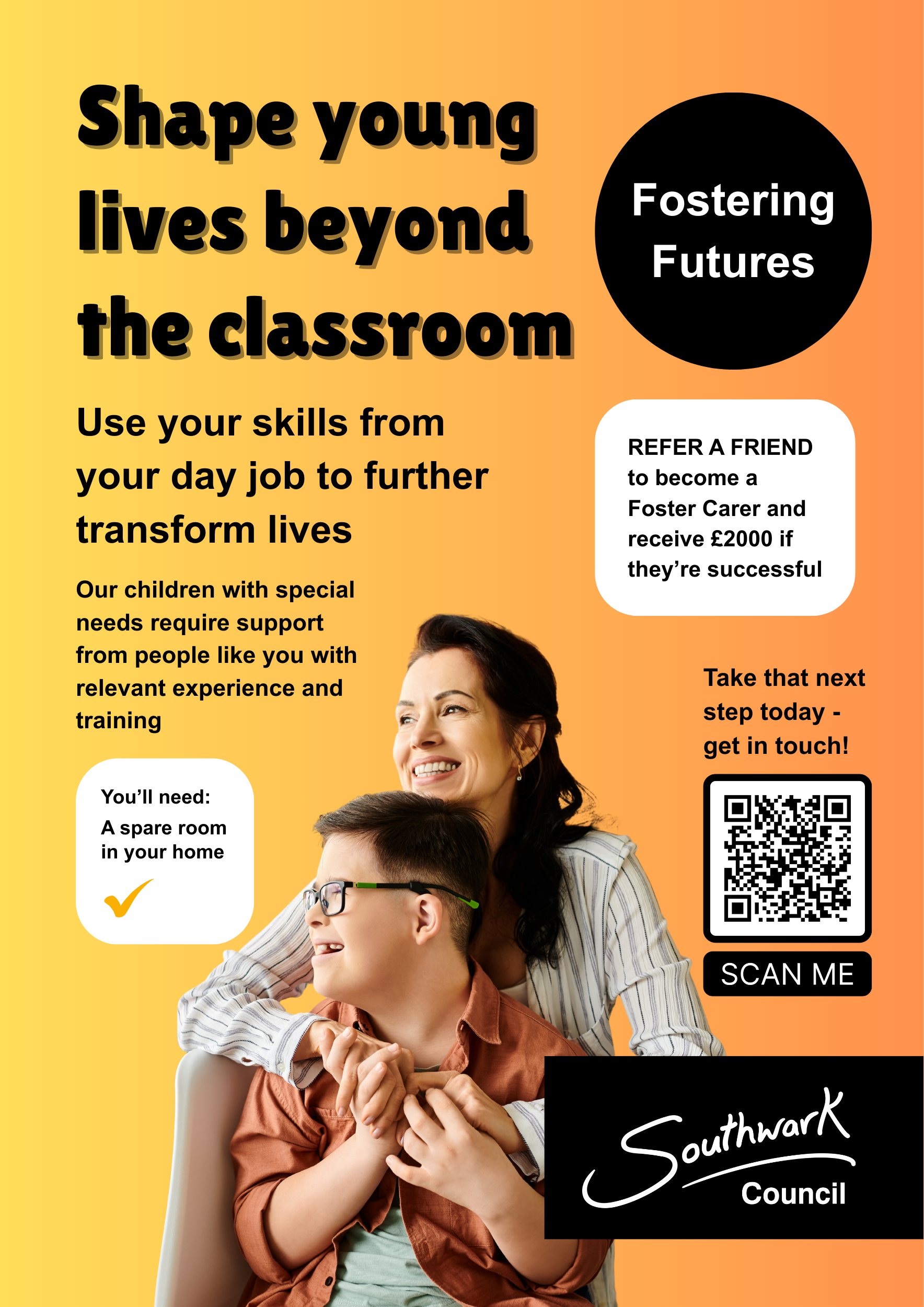 Call 02075250700 or email fostering@southwark.gov.uk.